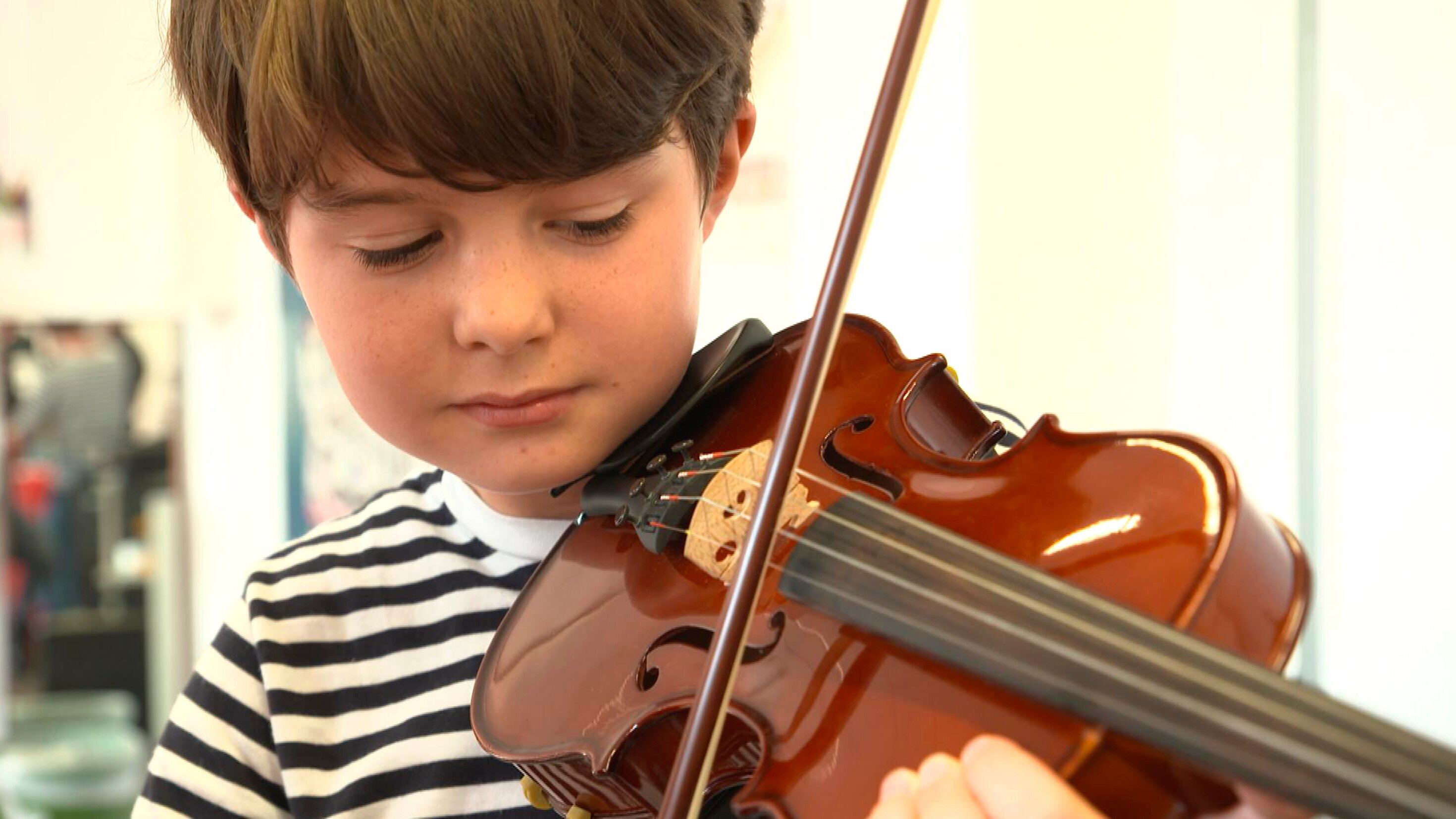 Samantha, Antonio und Kim haben einen Traum: Sie wollen Geige und Klavier spielen. Was für andere Kinder nicht ungewöhnlich ist, bleibt für sie eine schier unüberwindbare Hürde. Die Viertklässler aus Hannover kamen fast taub auf die Welt. Mithilfe eines Implantats im Kopf haben sie Hören und Sprechen gelernt. Doch unterschiedliche Töne zu unterscheiden ist für sie sehr schwer. Musikpädagogin Elena Kondraschowa hat ein besonderes Lernkonzept entwickelt, mit dem sie den Kindern Musik näherbringt. Die Hörgeschädigten sollen die Töne fühlen und dann spielen lernen. Vibrationen der Geige übertragen sich über Kinn- und Wangenknochen und werden im Kopf zu Noten. Töne fühlen die Kinder auch an Klaviersaiten oder über ihre Finger beim Singen am Hals der Lehrerin. Ein Schuljahr lang lernen Kinder, die zuvor noch nie ein Instrument gespielt haben, die Welt der Musik kennen. Vier Kinder bekommen Geigen-, vier Klavierunterricht, vier weitere Kinder werden als Vergleichsgruppe untersucht. Wissenschaftler der Medizinischen Hochschule Hannover begleiten das Projekt. Sie wollen herausfinden, ob sich ein Instrument unter solch erschwerten Bedingungen erlernen lässt. Welche Auswirkungen hat das auf die Sprach- und Hörentwicklung der Kinder? Die Medizinische Hochschule Hannover gilt europaweit als führend im Bereich der Cochlea-Implantation. Hierbei werden Elektroden am Innenohr fest verankert, die für jeden Laut Stromimpulse ans Gehirn senden. Ein Jahr lang begleitet das Kamerateam Kinder und ihre Eltern auf dem Weg in die Welt der Musik.