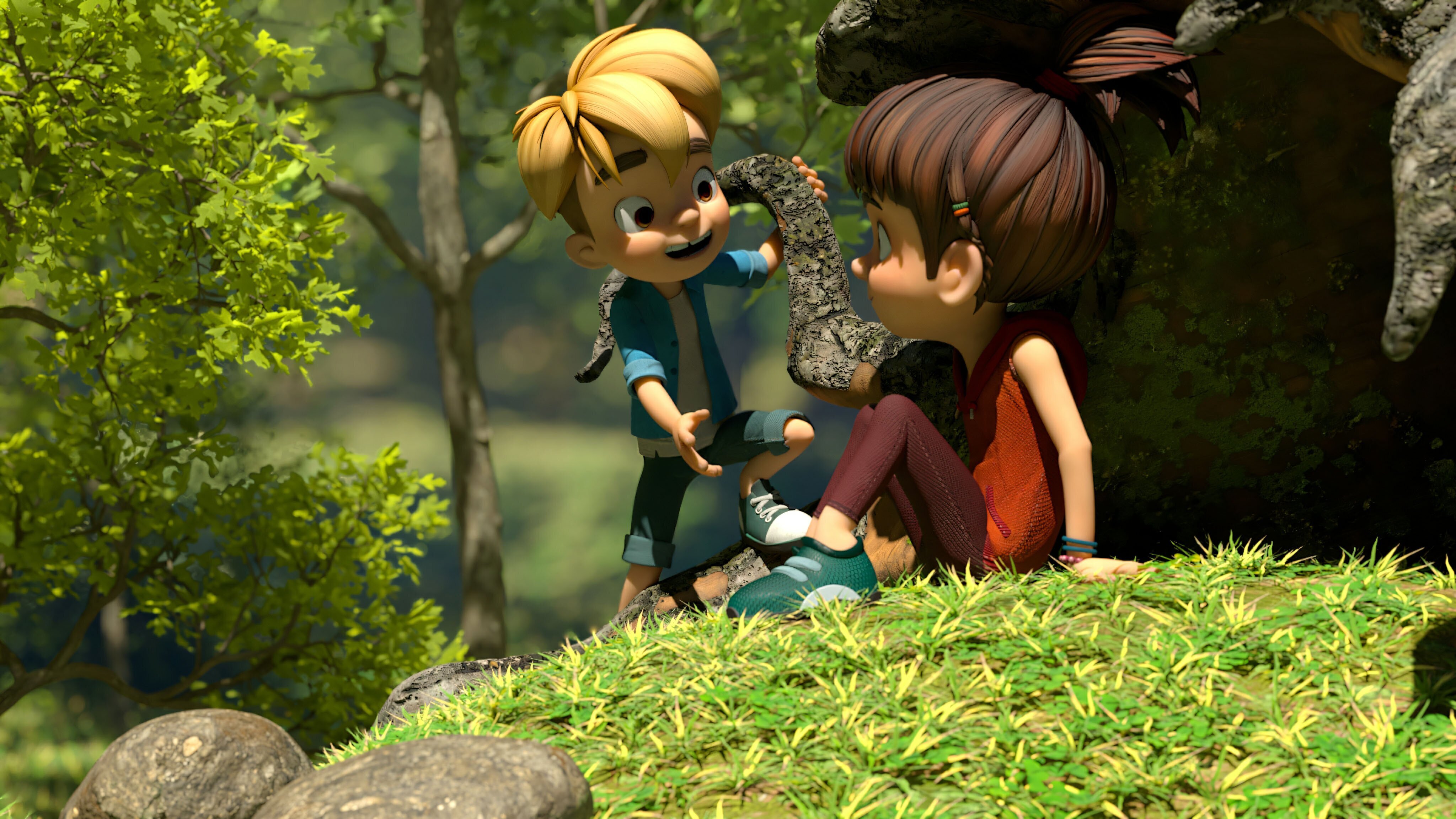 Au beau milieu des champs, près d'une vaste forêt et d'un joli ruisseau, se trouve le village de Bellefontaine. Raphaël, Lina, P'tit Pied et Grande Perche y vivent et forment une joyeuse bande d'amis. Débordants d'imagination, ils remplissent leur quotidien d'aventures trépidantes.
