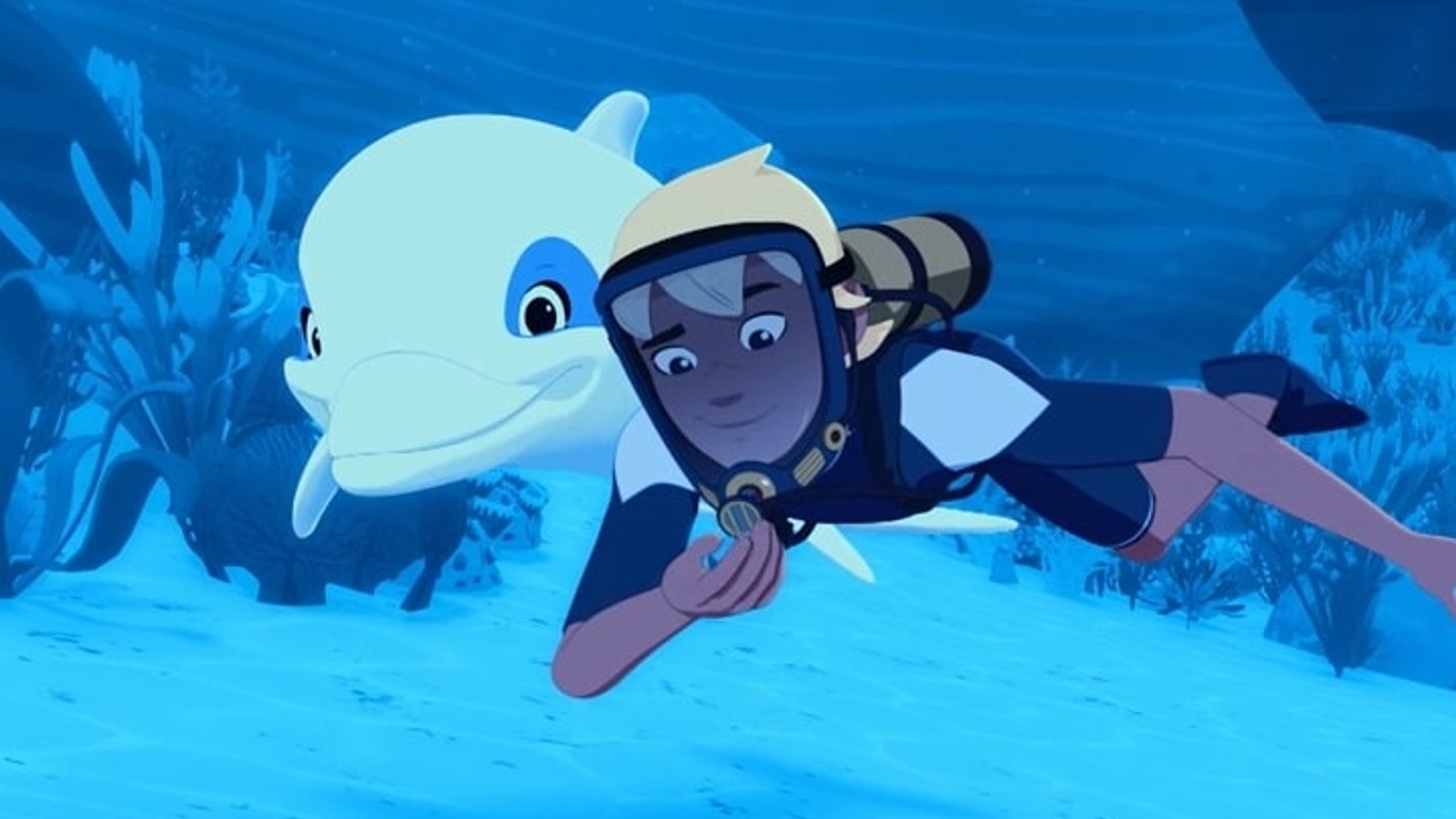 Dans un atoll de Polynésie, Yann et sa petite soeur Marina vivent avec leur oncle Patrick, océanographe réputé. Les deux enfants rencontrent Oum, un mystérieux dauphin blanc toujours prêt à venir en aide à ceux qu'il aime. Leur amitié va les pousser à explorer les richesses des fonds marins.